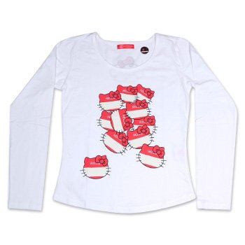 This Hello Kitty long sleeve shirt has a unique and contemporary design with red and white striped Kitty faces wearing the classic red bow.Material: cotton