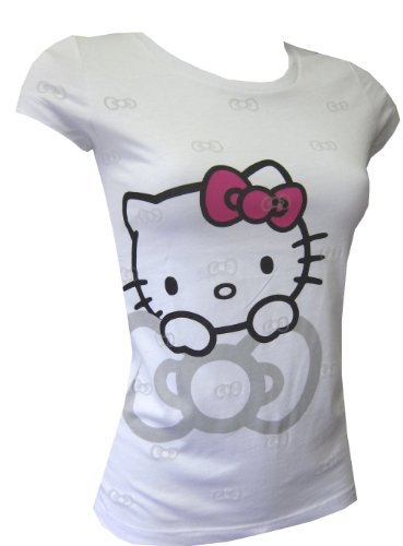 Hello Kitty White Fitted Tee with Burnout Bow Pattern for women (Medium) Best